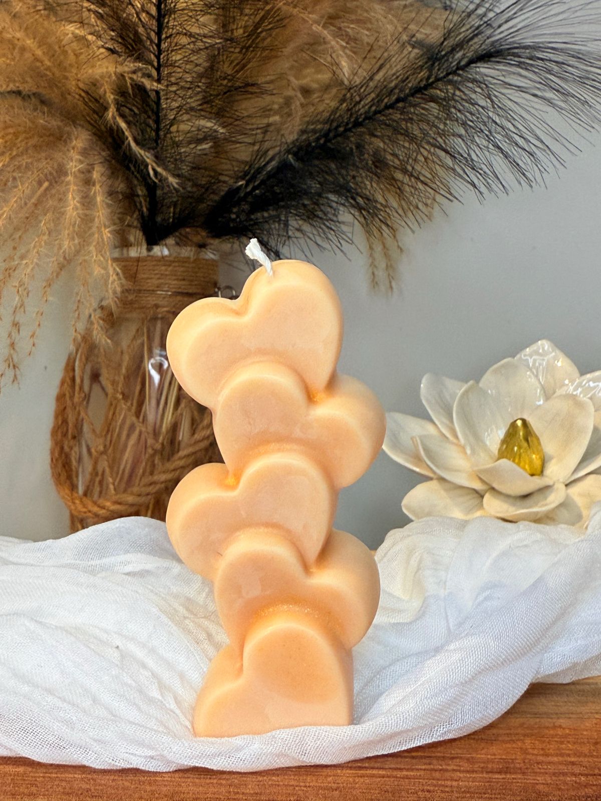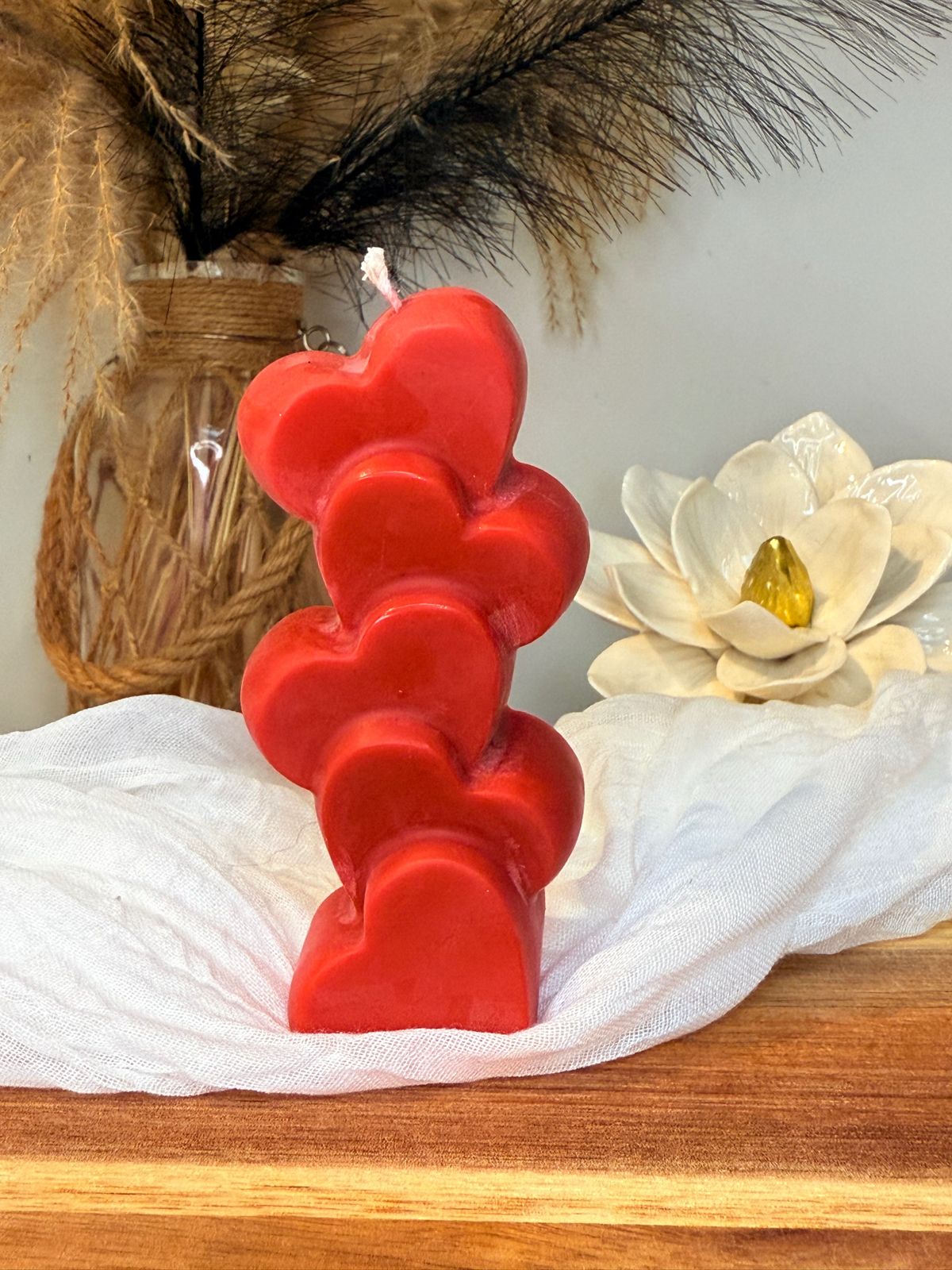 Offrez une touche d’amour et de douceur à votre intérieur avec cette bougie en forme de cœur empilé 💖.